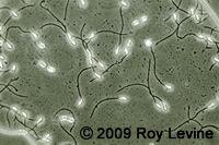 A microscopic image of active sperm released from a sperm packet after the addition of salt.
